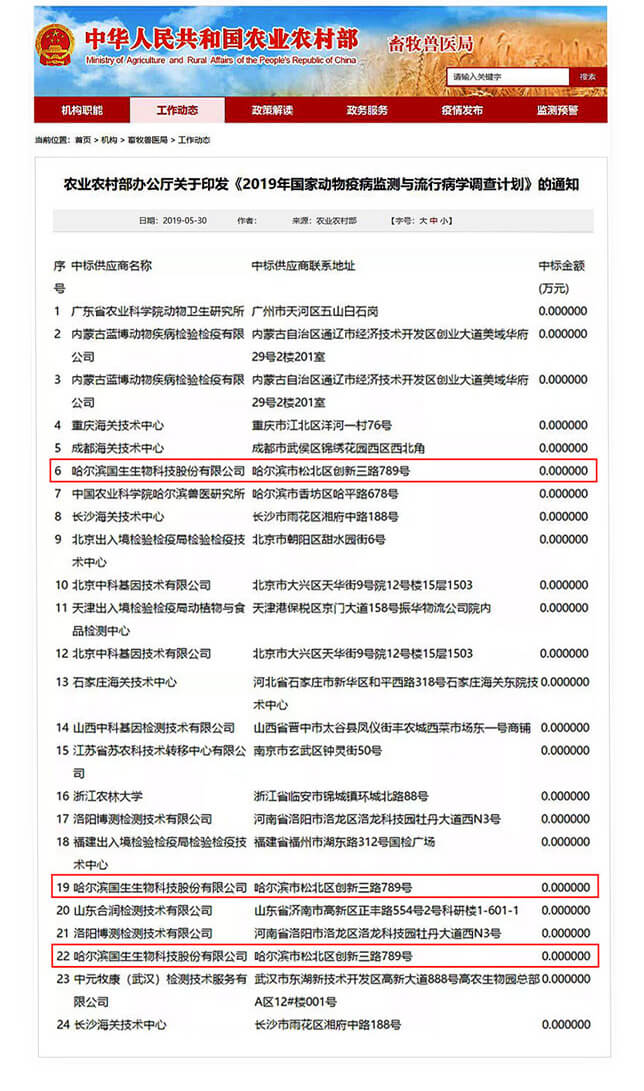 2019年成為國家首批動(dòng)物疫病監(jiān)測(cè)服務(wù)外包的合格供應(yīng)商