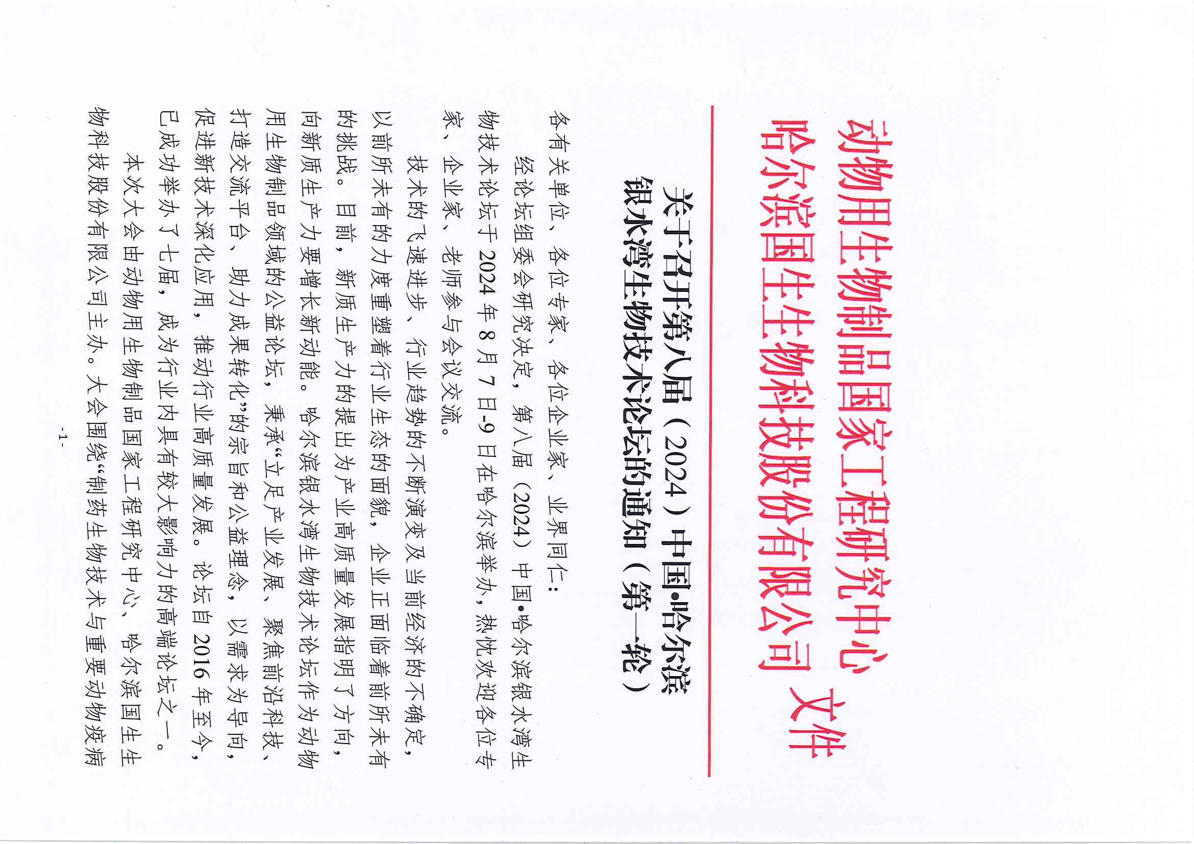 新聞動(dòng)態(tài) 通知公告 人才招聘 銀水灣論壇 關(guān)于召開第八屆(2024)中國(guó)·哈爾濱銀水灣生物技術(shù)論壇的通知(第一輪) 上一條:第八屆(2024)中國(guó)·哈爾濱銀水灣生物技術(shù)論壇(第二輪通知) 下一條:動(dòng)物用生物制品國(guó)家工程研究中心、哈獸研禽免疫抑制病創(chuàng)新團(tuán)隊(duì)、福建圣農(nóng)集團(tuán)圣澤生物及福建圣農(nóng)集團(tuán)技術(shù)中心黨支部共建活動(dòng) 返回上頁(yè)